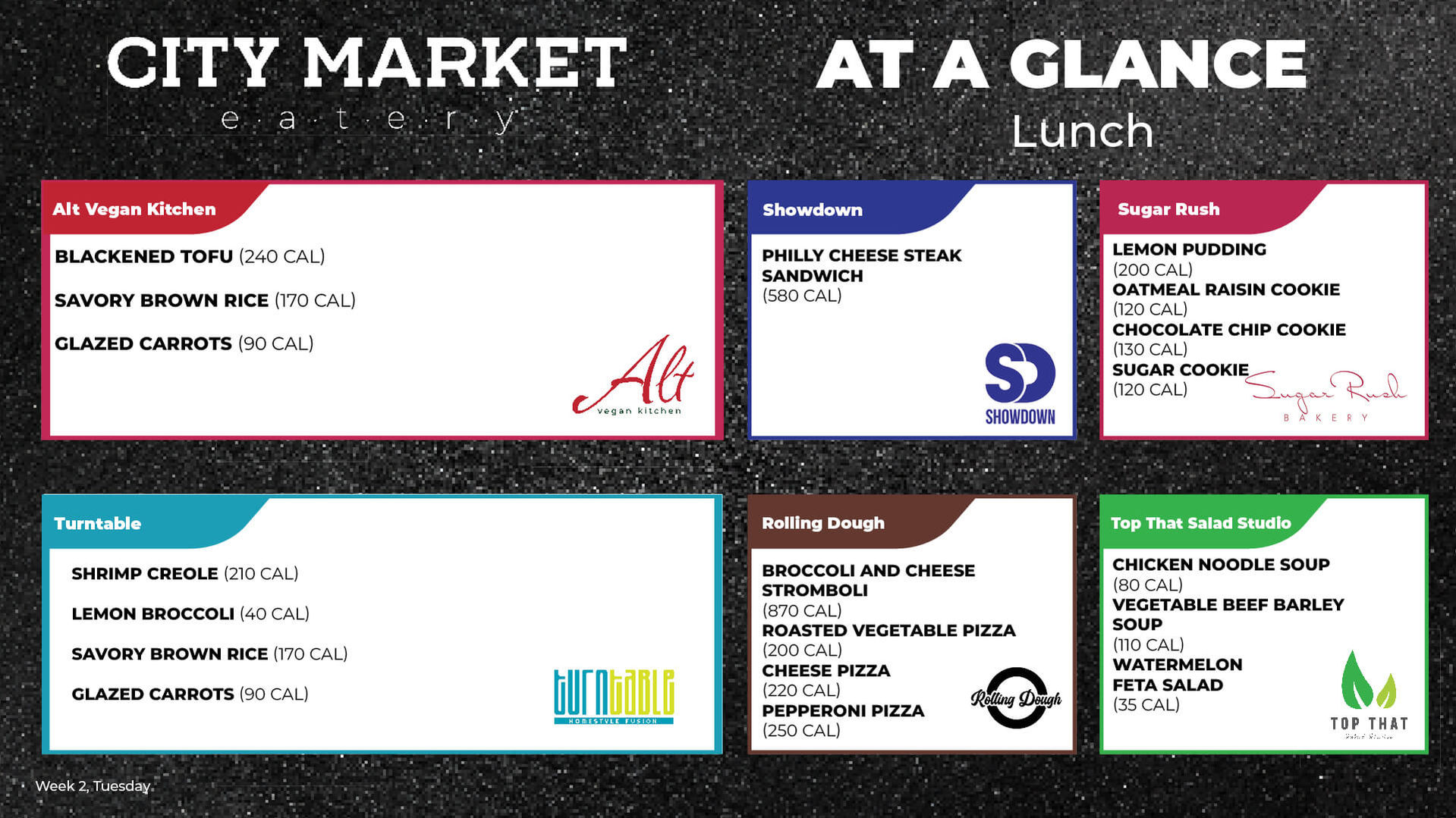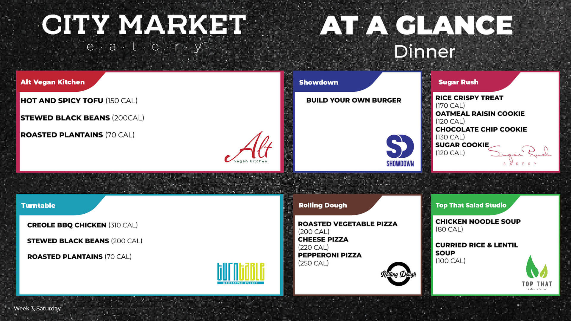 Explore rotating weekly menus and daily favorites across campus dining locations