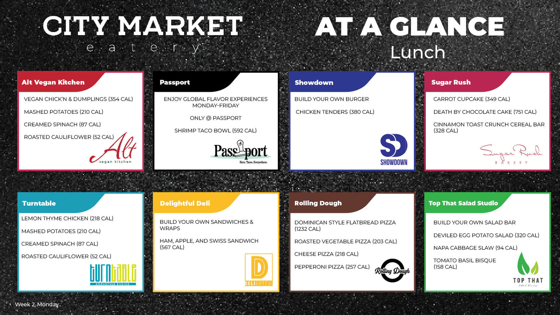 Explore rotating weekly menus and daily favorites across campus dining locations