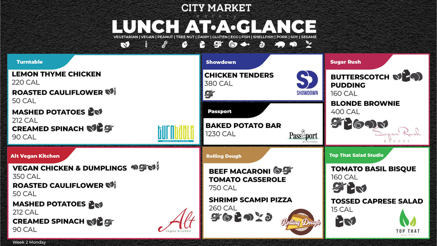 Explore rotating weekly menus and daily favorites across campus dining locations